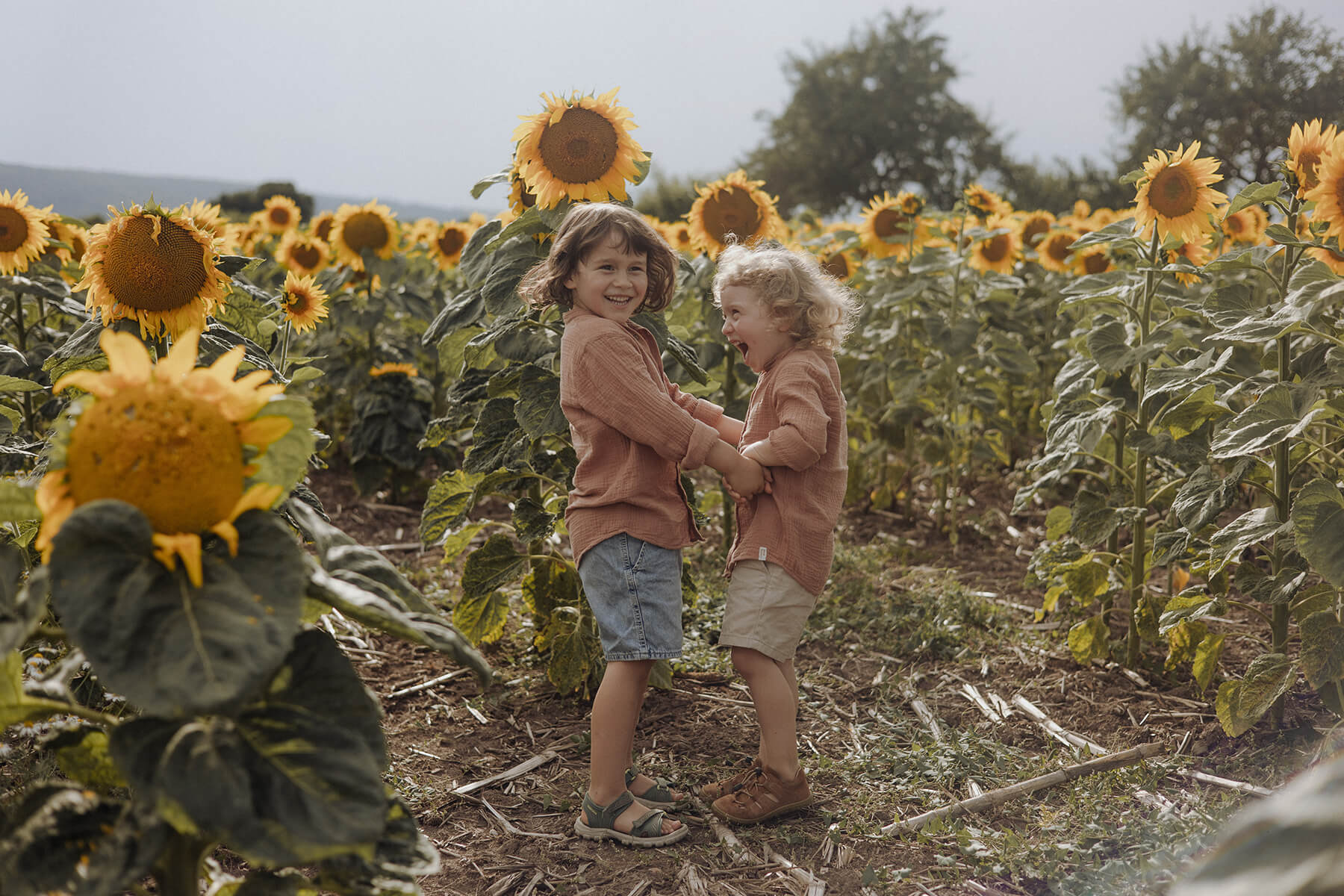 Farben, die in der Natur vorkommen sind immer die beste Wahl und wirken sehr harmonisch auf Fotos. Leuchtende Farben, wie rot und blau sind nicht vorteilhaft und lenken zu sehr von euch ab. Wenn du etwas aussuchst, dich im Spiegel anschaust und du dir richtig gut gefällst, du denkst ‚wow, seh ich gut aus‘, dann hast du die richtige Wahl getroffen, denn dann strahlst du schon von ganz allein und die Fotos können gar nicht anders und gut aussehen.